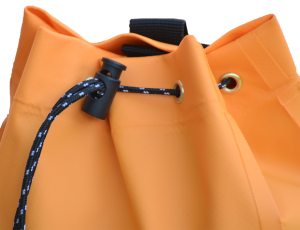 Bolsa de cintura multiusos, tiene un bolsillo interior con cierre de velcro para llevar pequeños accesorios. Abajo: redondeado para reducir el desgaste por el frotamiento repetido. Cierre: ojales, cordino y tanka. Transporte: anillo de cinta para meter el mosqueton, colgar en cintura. Dimensiones: 28x14x9 cm, bolsillo interior: 20×14 cm. Color: naranja. Peso: 240 g.
