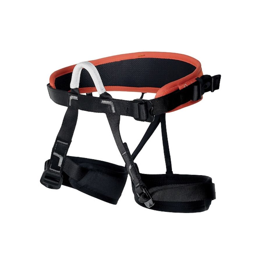 Arnés de asiento acolchado con tres hebillas adecuadas principalmente para principiantes, alquileres en gimnasios de escalada o cursos de cuerda.