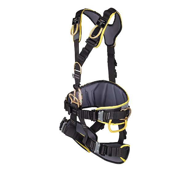Arnés totalmente ajustable para trabajos verticales en cuerda con cinturón ancho acolchado, perneras y correas para los hombros. Adecuado también para situaciones de posicionamiento de trabajo, detención de caídas y retención de trabajo. La variante del arnés EXPERT 3D con hebillas SPEED y todas las partes metálicas en acero.