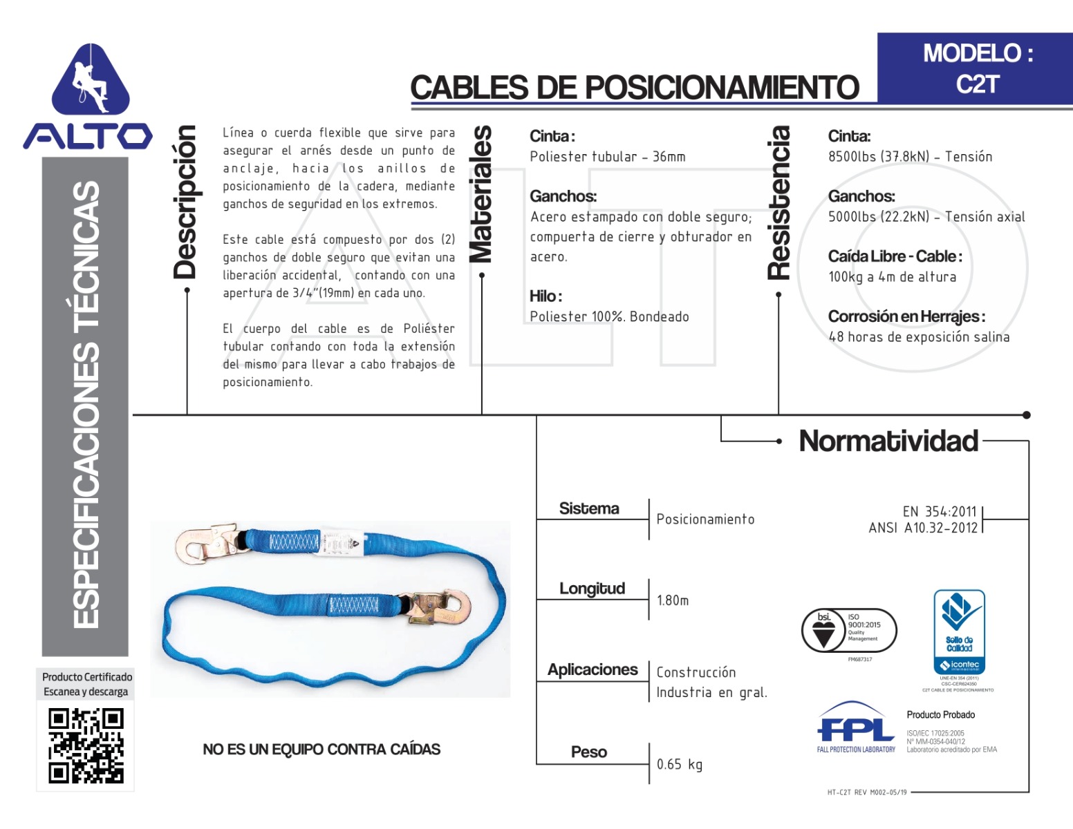 Normatividad: EN 354:2011, ANSI A10.32-2012