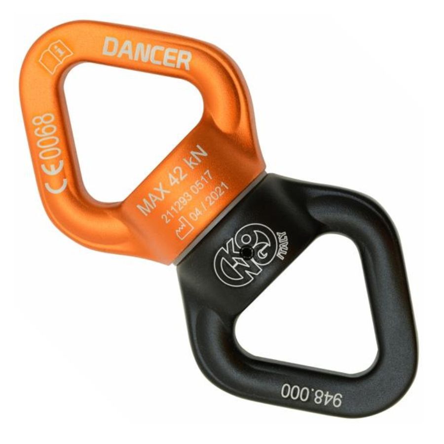 Eslabón giratorio de aluminio que evita que se tuerza la cuerda durante la suspensión de una carga.