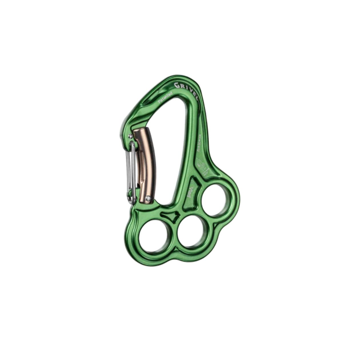Mosquetón con placa de aparejo integrada y sistema Twin Gate.