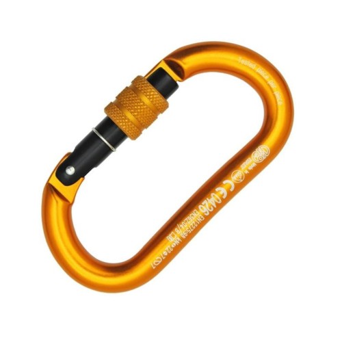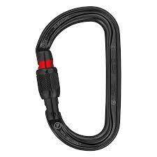 Mosquetón con bloqueo de seguridad en forma de D para conectar los aparatos al arnés
