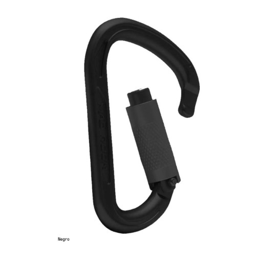 - SCREW-LOCK: bloqueo manual a rosca con indicador rojo visible cuando el mosquetón no está bloqueado.