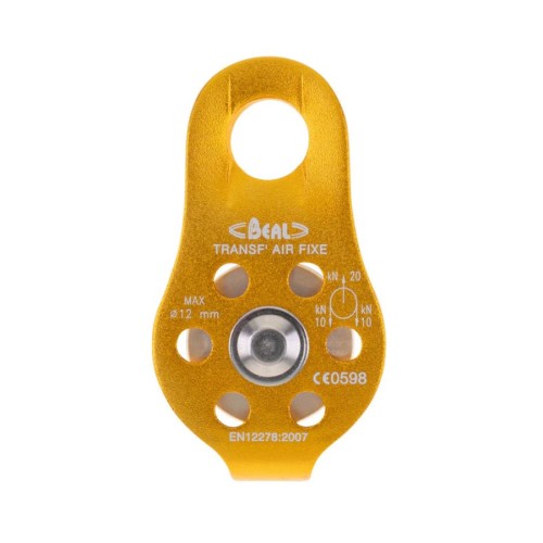 La Polea Transf Air Fixe de Beal con eje y arandela de acero inoxidable logra un excelente rendimiento, gracias a la roldana montada sobre un casquillo de bronce. Por ende es una polea única altamente eficiente con placa lateral giratoria y roldana montada en rodamientos de bolas.