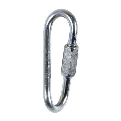 Maillón rápido de acero galvanizado de forma ovalada y torcido por 90°, Ø 8 mm, extremadamente resistente y diseñado para soportar altas cargas en todos los ejes.